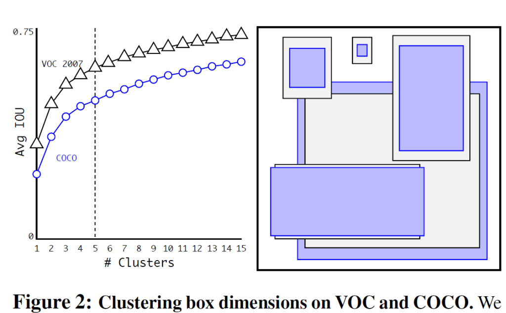 使用聚类的方法,5个anchor就可以达到9个手工选择anchor的效果。