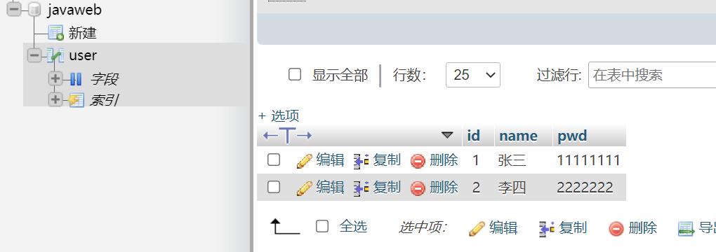 select * from javaweb.user