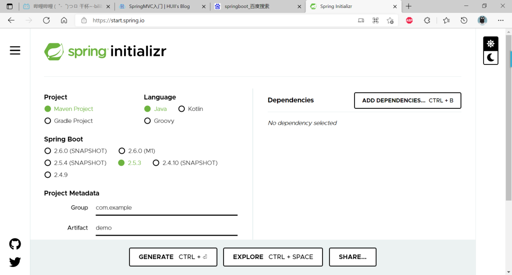 官方提供快速生成网站,IDEA集成了。