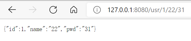 public Object user1(@PathVariable("id") Integer id, @PathVariable("name") String name, @PathVariable("pwd") String pwd){
