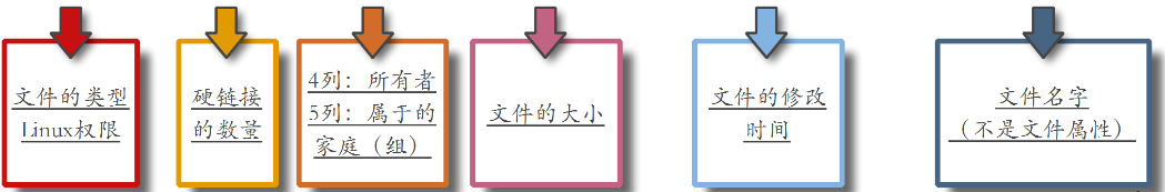 -rw-r--r--。文件类型权限,该字段共有10位,其中第一位表示文件种类,2-4,5-7,8-10分别表示文件拥有者、用户组、非本人且非用户组对应的权限。1。链接数,表示多少文件名链接到此节点。huii。第一个表示文件/目录拥有者账号。huii。第二个表示文件所属用户组。256。表示文件容量大小,单位为Bytes。Mar 7 10:36。最近修改时间。test.txt。文件名。